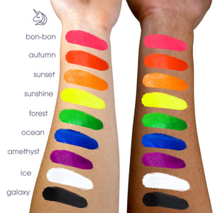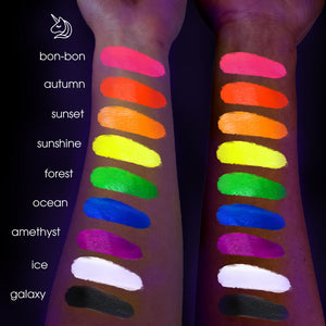 Buy our Stargazer UV Black Light Torch as it will illuminate your body art creations in the dark when using our cake liners!